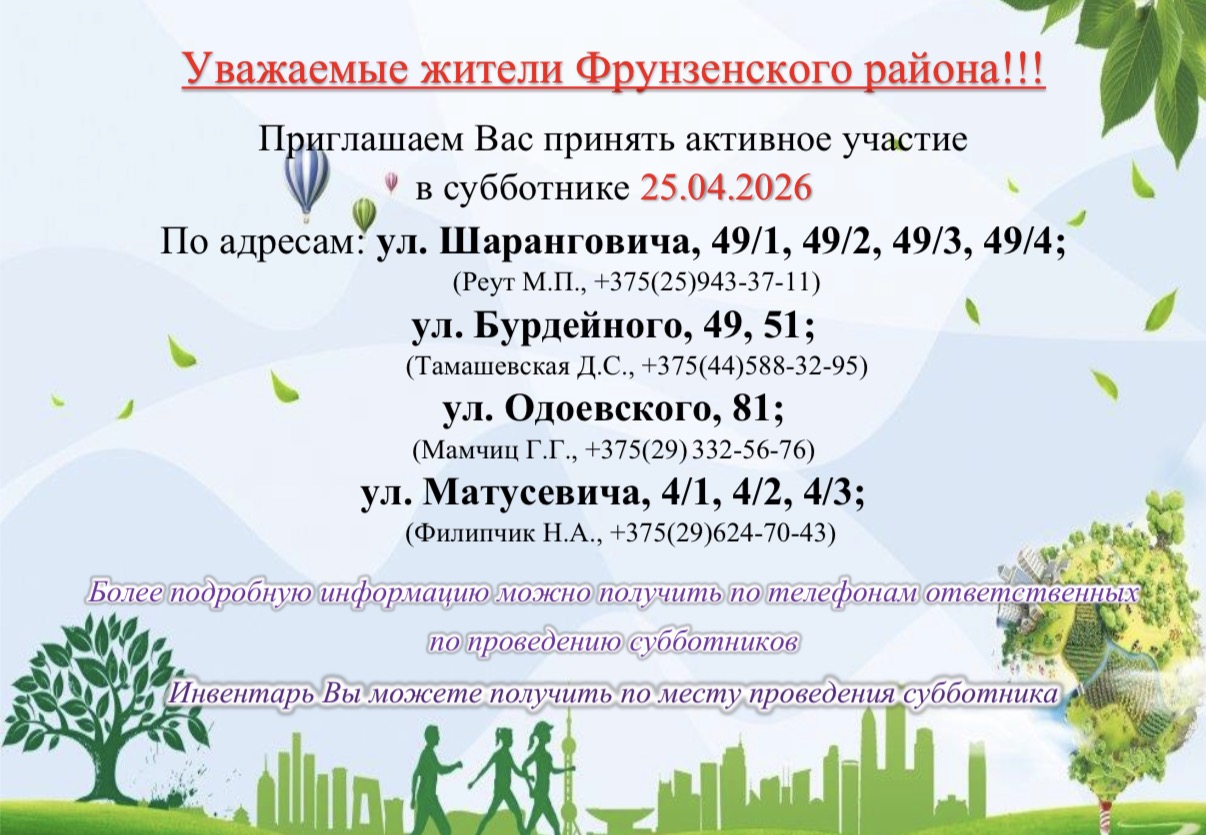 УВАЖАЕМЫЕ ЖИТЕЛИ ФРУНЗЕНСКОГО РАЙОНА Г.МИНСКА!
